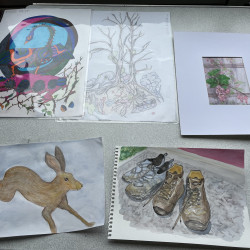 After this, we all started on our individual projects based on the theme of “The Emergence of Spring”. This was a wide-ranging brief and everyone was able to develop their own particular skills using either their own stimulus material or the books, twigs and flowers that many people had brought along.